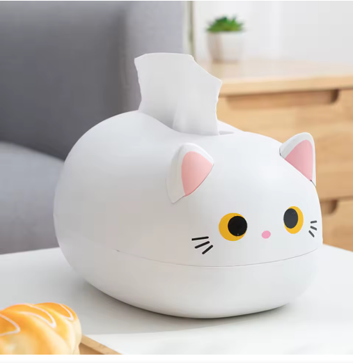 Cute cat‑ear tissue box cover with detachable toothpick holder for dual use and space saving. Includes a tissue stretcher for easier paper pulling.